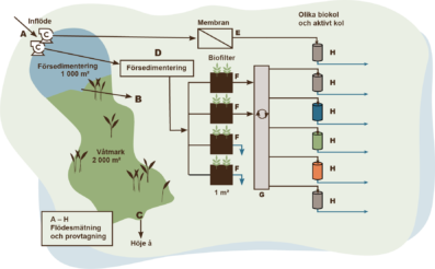 In parallel with the constructed wetland, a test site is being developed. This site will have well-placed infrastructure to enable testing of various stormwater treatment techniques. The purpose of the test site is to facilitate technological advancement by serving as a testing ground for current and future issues in stormwater purification. The characteristics of stormwater vary greatly, both between different rain events and within a single rain event. By enabling tests on “live” and actual stormwater under real conditions, such as cold and heat, it is possible to observe how the techniques and treatment methods perform in a more realistic environment before they are applied to the sewer network and in densely populated urban areas.